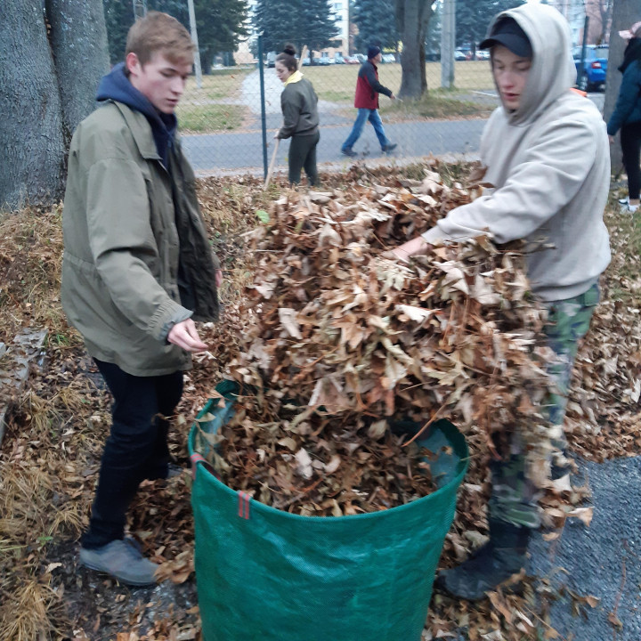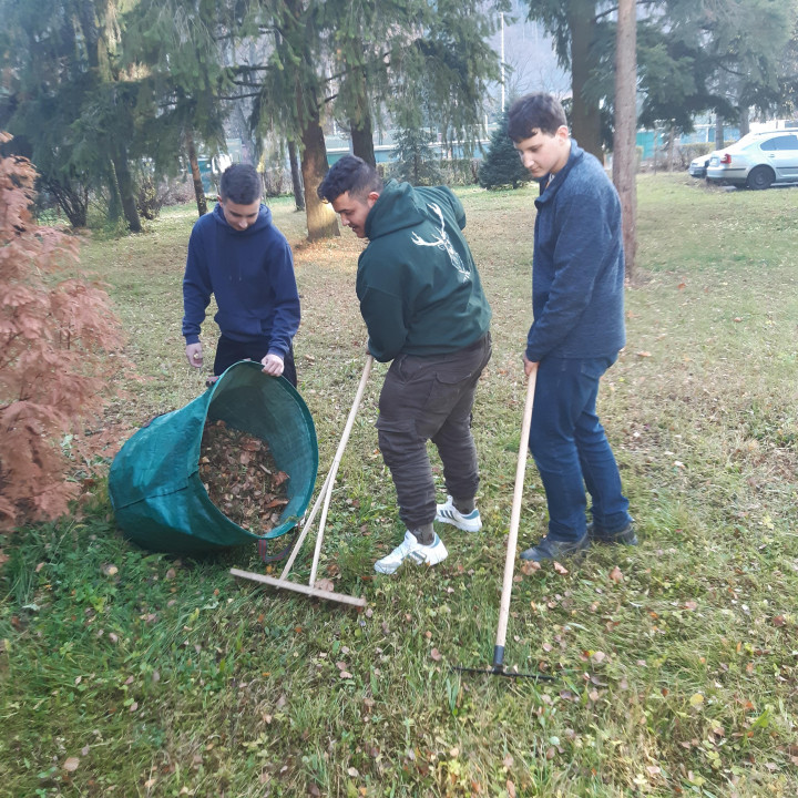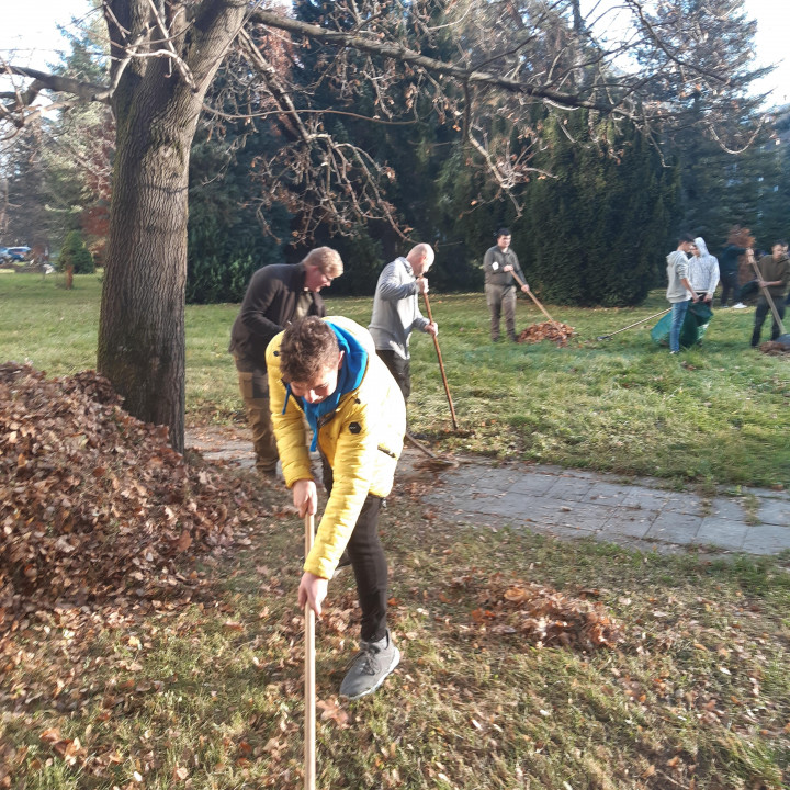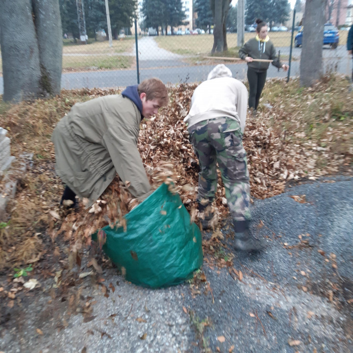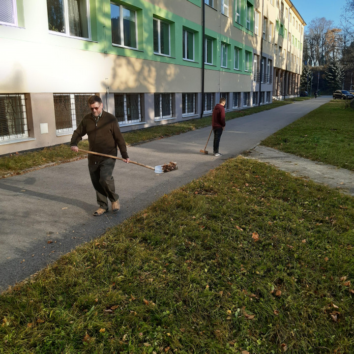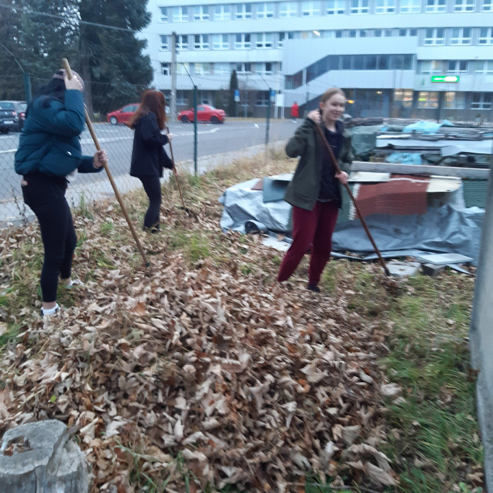 Po roku a pol sme sa opäť pustili do jesenného upratovania - hrabanie lístia v areáli školy a školského internátu.