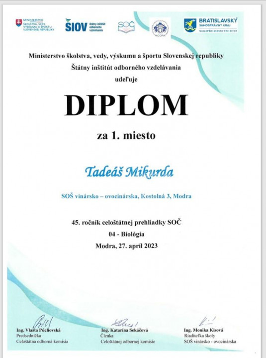 Táto súťaž nám nie je cudzia, o čom svedčia úspechy našich žiakov v predchádzajúcich ročníkoch. V celoslovenskom kole 45. ročníka SOČ sa so svojimi prácami predstavili 2 žiaci našej školy.