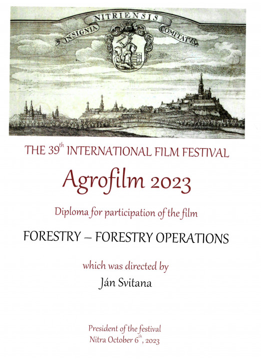 Medzinárodný filmový festival Agrofilm ocenil každého účastníka diplomom za účasť.
