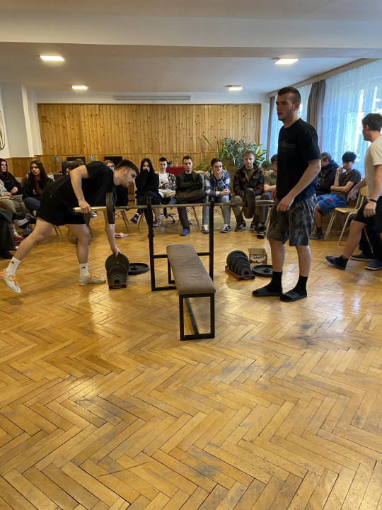 V školskom internáte našej školy sme 14.2. 2024 usporiadali zaujímavú športovú akciu - súťaž o najsilnejšieho žiaka/žiačku školy pre rok 2024. Do súťaže sa zapojili chlapci aj dievčatá. Dievčatá súťažili na maximálny počet opakovaní prázdnou olympijskou tyčou. Chlapci súťažili v šiestich váhových kategóriách, dievčatá v jednej kategórii. Chlapci súťažili o zdvih maximálnej váhy v tlaku na lavičke. Aleš Brádňan žiak II.A triedy sa stal absolútnym víťazom pre rok 2024, jeho maximálny výkon bol 120kg. V dievčenskej kategórii sa súťažilo o maximálny počet zdvihov prázdnej olympijskej činky. Víťazkou sa stala Vanda Rusnáková žiačka I. A triedy s počtom 46 zdvihov. Každý súťažiaci mal tri pokusy a platný najvyšší zdvih rozhodol o umiestnení. Svojimi podanými výkonmi bolo vidieť, že fyzická zdatnosť pre žiakov/žiačky SOŠ lesníckej a drevárskej J.D. Matejovie v Liptovskom Hrádku je pre ich študijné zameranie prirodzená. Každý úspešný pokus bol ocenený búrlivým potleskom. Vydarená akcia sa žiakom veľmi páčila. Každý súťažiaci mal svoje obecenstvo, ktoré ho povzbudzovalo do výborných výkonov.